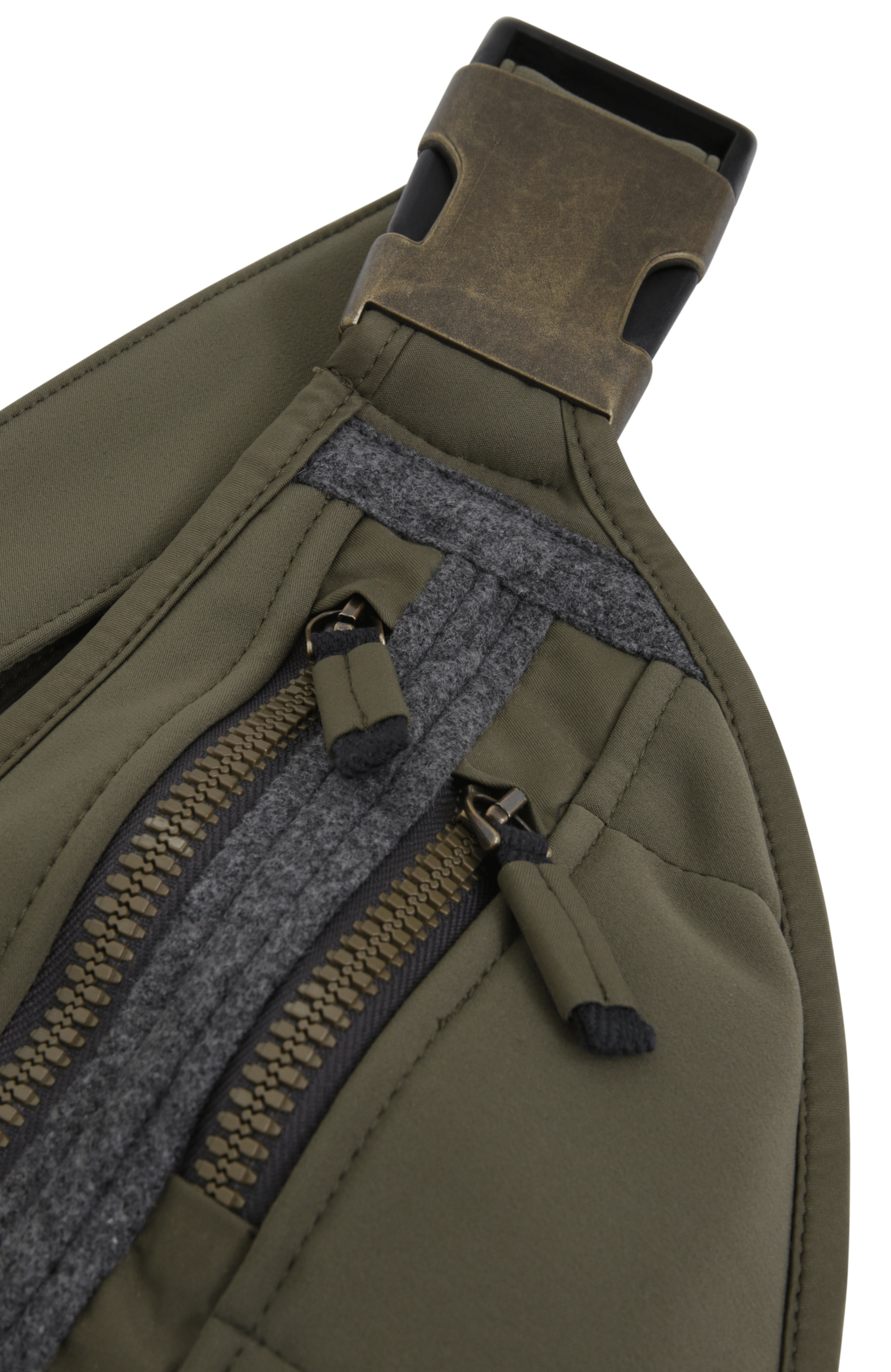 The currently very trendy belt bag is made from Schöller Softshell, a robust, multi-layered fabric that is highly elastic, breathable, water-repellent, and dirt-resistant. The main compartment offers ample space for essentials such as a phone, wallet, and keys. The two zippered pockets provide additional storage for smaller items. All three compartments are made from Performance Ski material, a highly stretchable, water-repellent, and breathable fabric. The buckle and loden detailing further enhance the bag’s look. This practical belt bag is exceptionally lightweight and can be worn close to the body – classic around the waist or across the back.