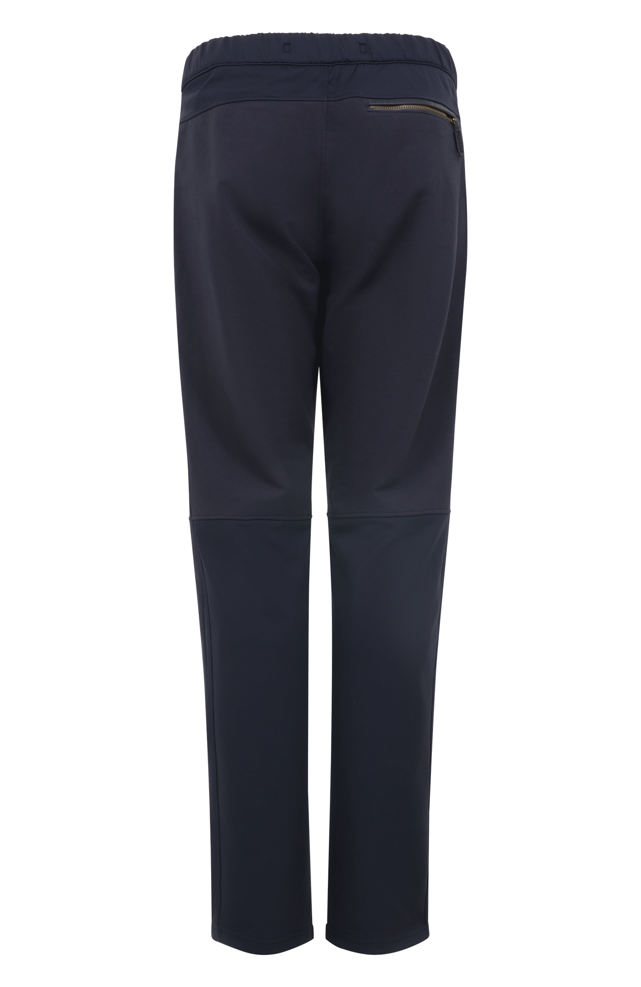 The slim, tapered leg emphasizes a contemporary silhouette, while the elastic Cotton Stretch inserts at the waistband, sides, and lower calves provide a perfect fit and maximum flexibility. Two side pockets with washable Alcantara leather trim add stylish accents, and a zippered back pocket offers extra functionality, completing the thoughtful design.