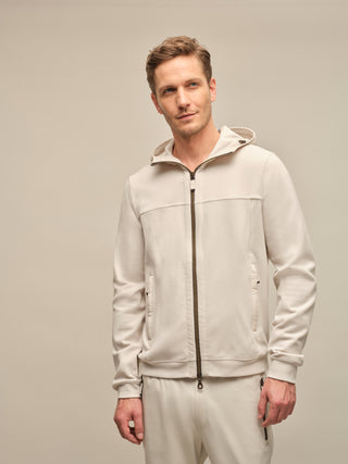 The relaxed and casual Thomas fleece jacket with a hood in a summery sandstone shade – lightweight, comfortable, and perfect for any occasion.
