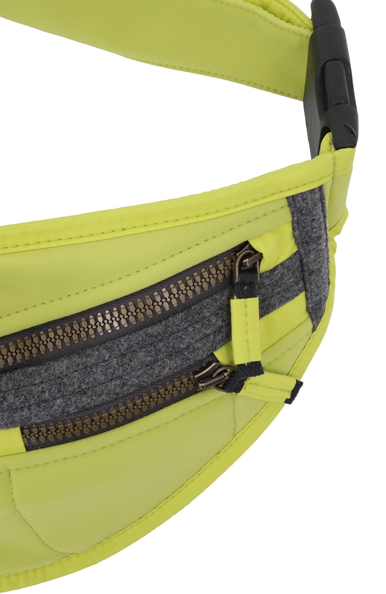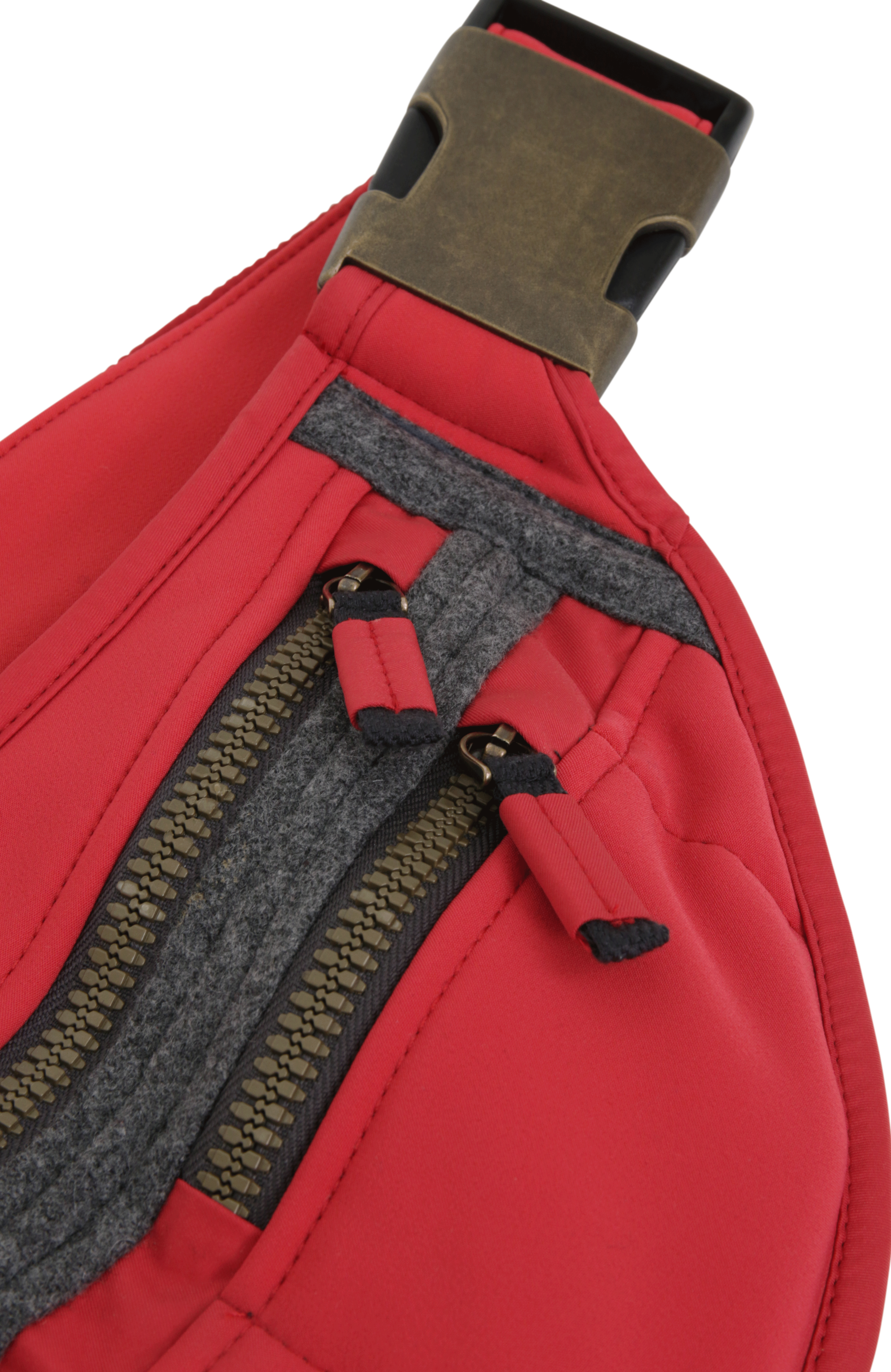Belt bag made from Schöller Softshell, a robust, multi-layered fabric that is highly elastic, breathable, water-repellent, and dirt-resistant. The main compartment offers ample space for essentials such as a phone, wallet, and keys. The two zippered pockets provide additional storage for smaller items. All three compartments are made from Performance Ski material, a highly stretchable, water-repellent, and breathable fabric. The buckle and loden detailing further enhance the bag’s look. This practical belt bag is exceptionally lightweight and can be worn close to the body – classic around the waist or crossbody.