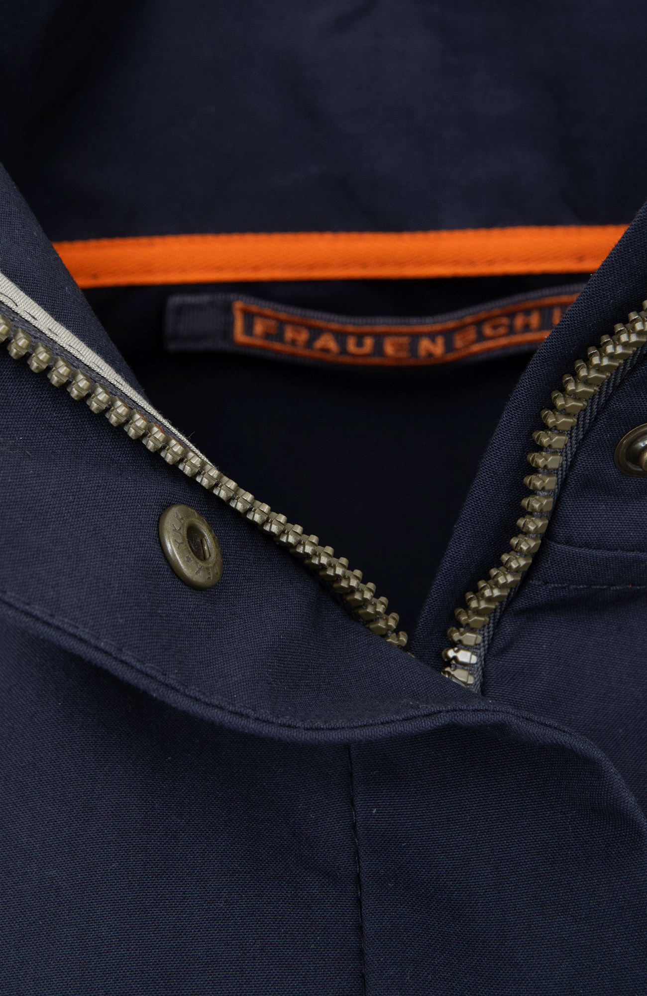Thanks to a special cotton weaving technique, the all-rounder outdoor jacket is water- and wind-repellent without being particularly functional. The concealed two-way zipper and the special design of the bags give timeless elegance.