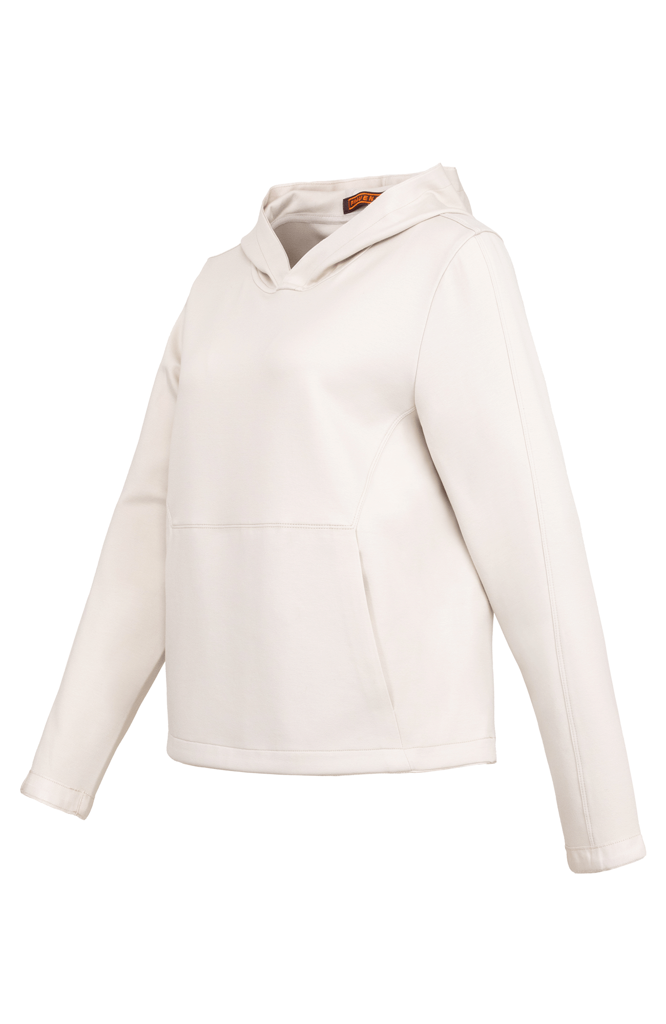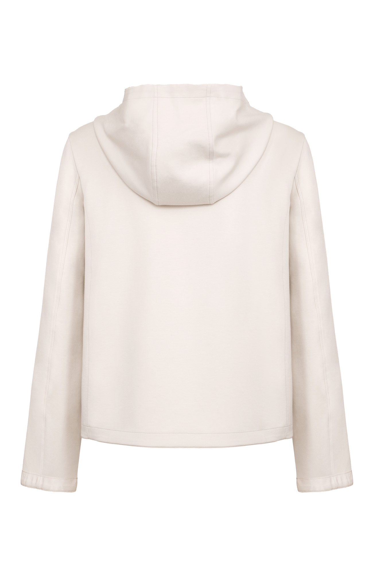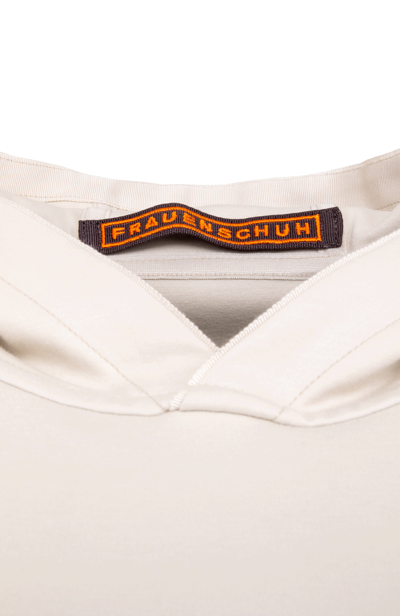 As soon as you put on the sporty, elegantly designed hoodie, you can feel how light, soft and elastic it is. This is ensured by the Italian cotton with nylon and elastane content, which is also responsible for the clean, silky look.